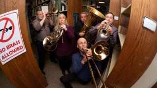 With well over one hundred and fifty performances to date, Timberdale Brass covers the greatest tunes from 1910 - 1940 and beyond, offering audiences a nostalgia bomb that leaves them feeling light on their feet and grinning ear-to-ear. From the earliest days of jazz, to American songbook hits, their one-of-a-kind renditions run the gamut from hard swing to swooning ballads and back again. Come hear the proof that good tunes never get old!